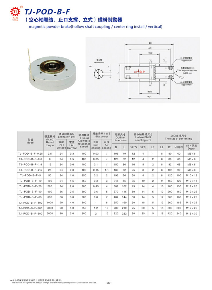 水冷式磁粉制動器(TJ-POD...產品簡介: (天機傳動)水冷式磁粉剎車器...