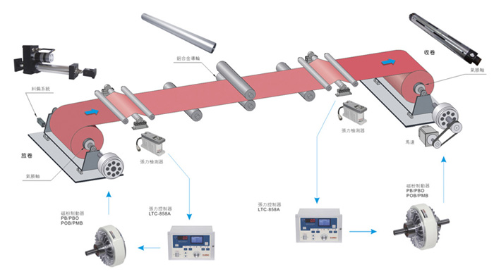 收放卷行業操作在磁帶制造中是必不可少的,這些可能是極其敏感的過程,會影響最終產品的質量。例如,施加在膠帶上的過大張力會損壞紙幅結構,導致其卡扣或拉伸。更確切地說,隨著輥子直徑減小,輥子速度將增加以保持恒定的線速度,但是必須調節張力制動力使幅材上的張力保持一致。因此自動張力控制器是必不可少的質量保證設備。