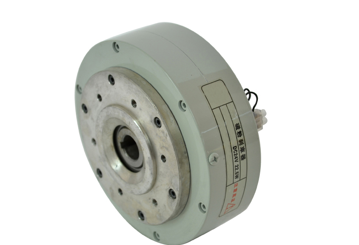 單軸磁粉制動器是由傳動單元(輸入軸)和從動單元(輸出軸)兼并而成。在兩組單元之間的空間,填有粒狀的磁粉(休積大約40微米)。當磁性線圈不導電時,轉矩不會從傳動軸傳于從動軸,但如將線圈電磁通電,就因為磁力的效果而吸引磁粉發生硬化現象,在連繼滑動之間會把轉矩傳達。 單出軸磁粉制動器是一種性能優越的主動操控元件。它以磁粉為工作介質,以激磁電流為操控手法,到達操操控動或傳遞轉矩的目的。其輸出轉矩與激磁粉電流呈良好的線性關系而與轉速或滑差無關,并具有響應速度快,結構簡略的長處。